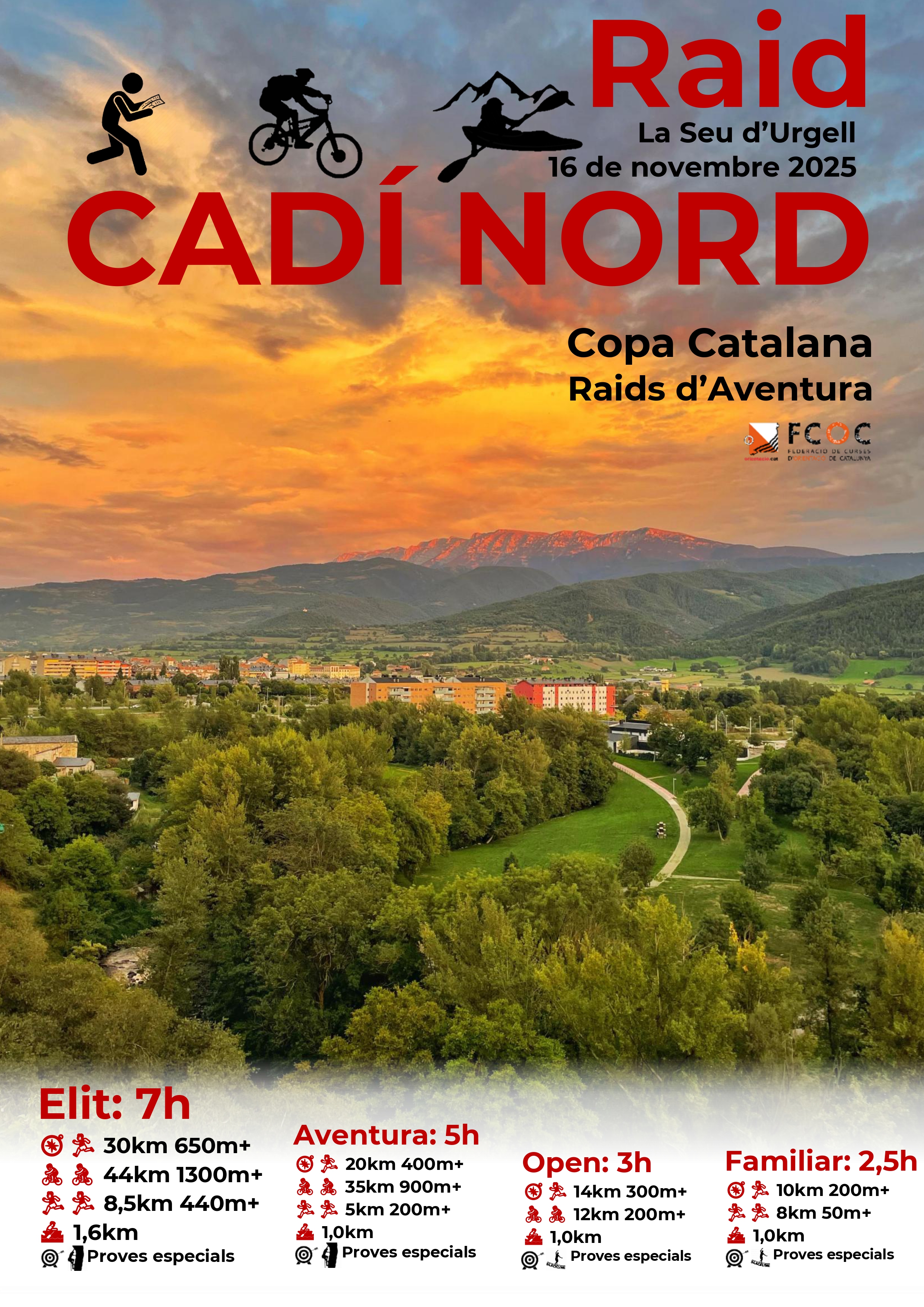 La primera edició d’aquest Raid CADÍ NORD transcorrerà per l’entorn privilegiat de la Seu d’Urgell, amb una vall plana i ample que ens ofereix infinitat de possibilitats de totes les modalitats, combinant-ho amb el desnivell pronunciat de la “cara nord” del Cadí que li afegirà aquest punt d’exigència física!