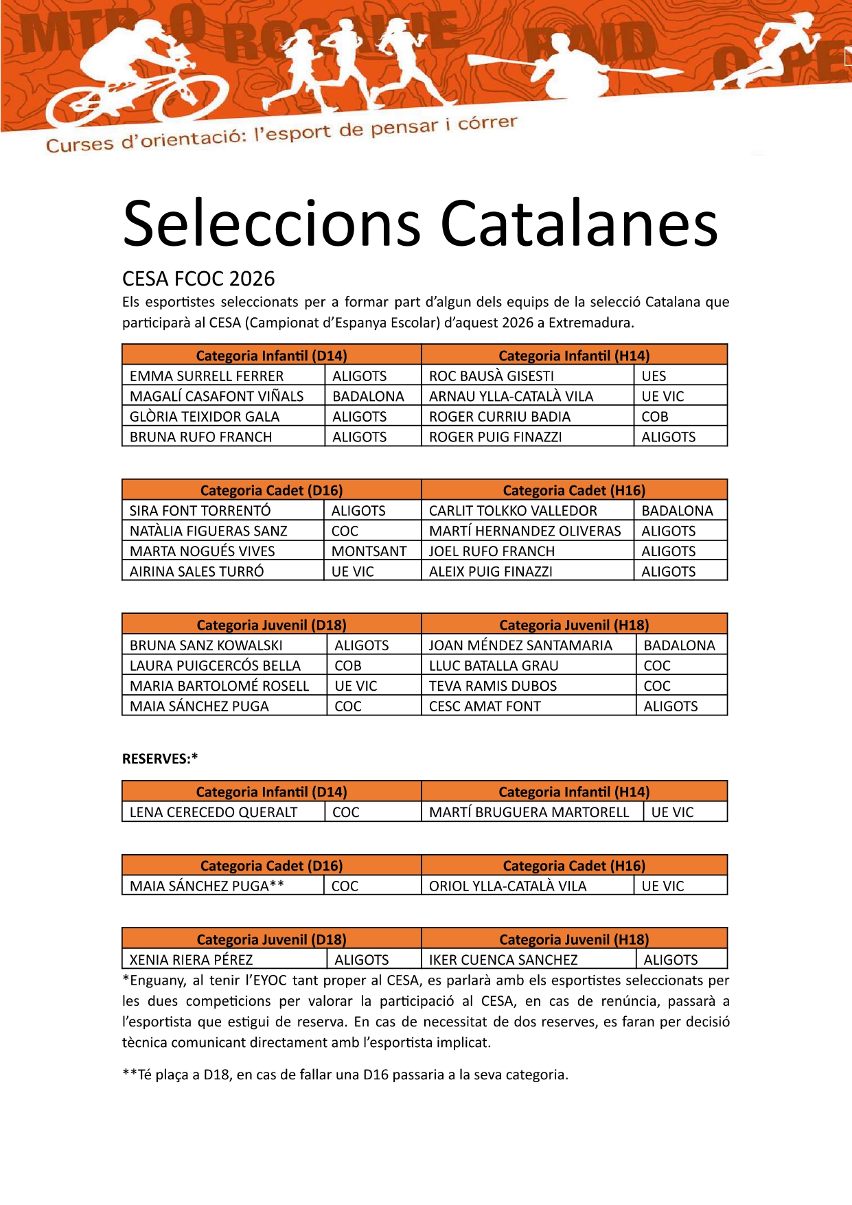 Seguint els cirteris de selecció en formen part els següents esportistes: