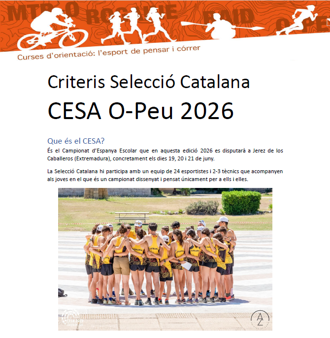 Ja teniu publicades totes les curses oficials que formaran part de la Copa Catalana 2026 a totes les modalitats. Enguany hi tindrem OPeu, Esprint, Rogaining, Trail-O, MTBO i la novetat de l'Ski-O. Queda pendent publicar el calendari de Raids d'Aventura.